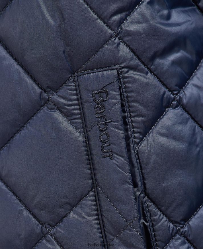 Barbour galento dygsniuotas švarkas gali pasigirti briaunos detalėmis prie apykaklės ir priekiniu užtrauktuku su dviem apatinėmis kišenėmis, kad būtų patogiau susidėti. Šios striukės rankogalių ir apačios briaunos detalės yra padengtos tartaniniu pamušalu, kad būtų sukurtas aukščiausios kokybės stilius.