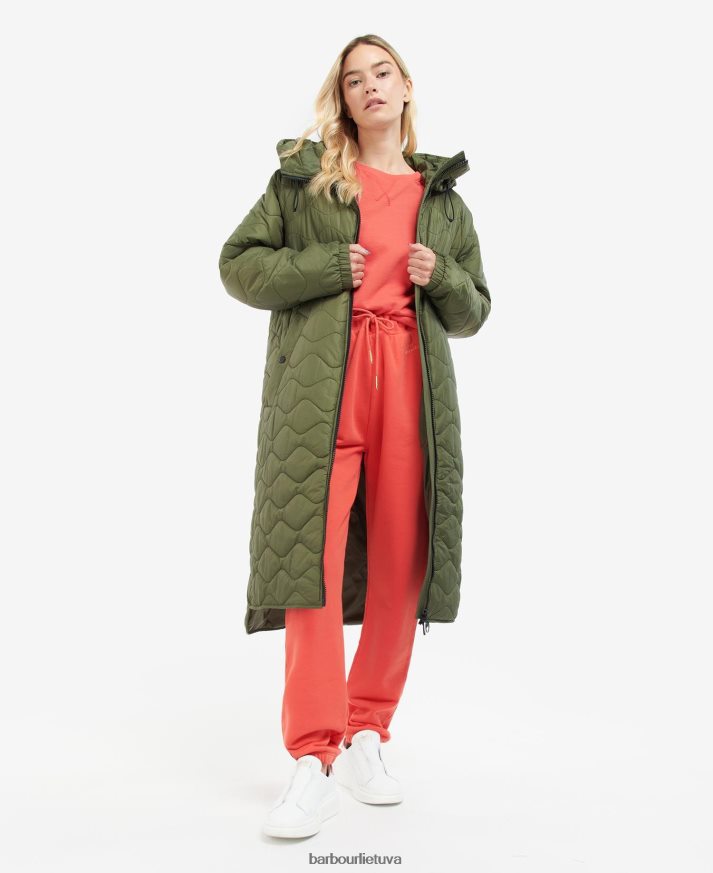 apranga Barbour Rolando dygsniuotas švarkas palmių žalia moterys 6F6D801449
