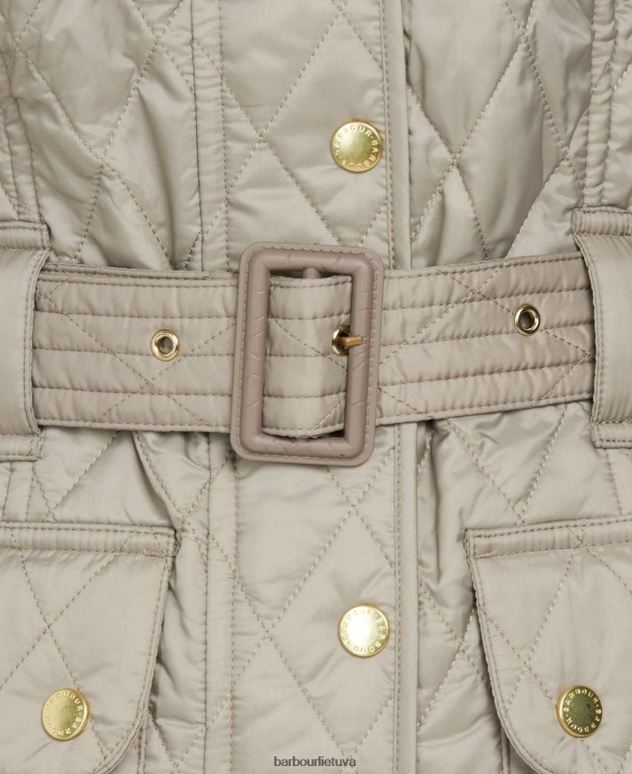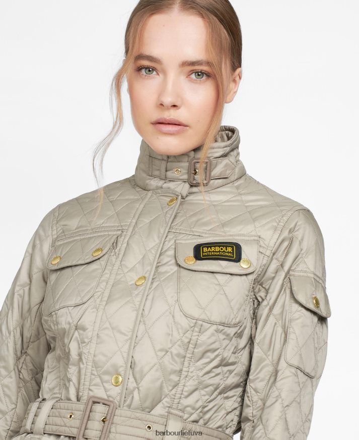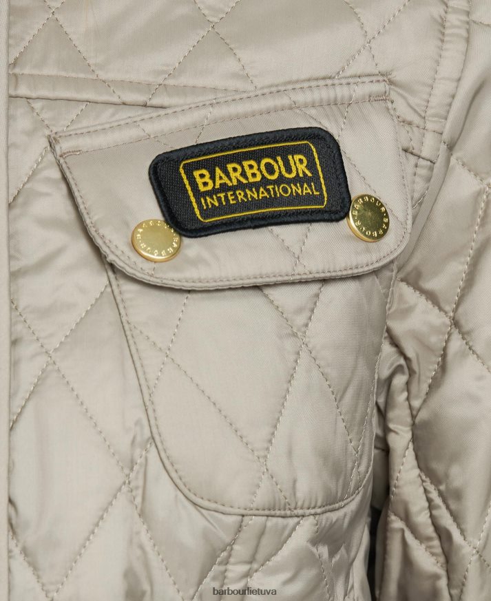 Ši dygsniuota striukė, atnaujinanti ikonišką tarptautinį barbour dizainą, kad būtų įprastai prigludusi, turi deimantais dygsniuotą išorę. keturios dygliuotos kišenės, piltuvo apykaklė su kaklo dirželiu, rankovių kišenė ir pečių lopai išlaiko autentišką dviratininko striukės išvaizdą, o sagtimi užsegamas diržas sukuria glostantį siluetą.