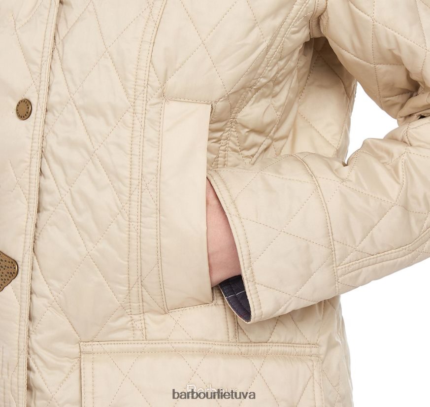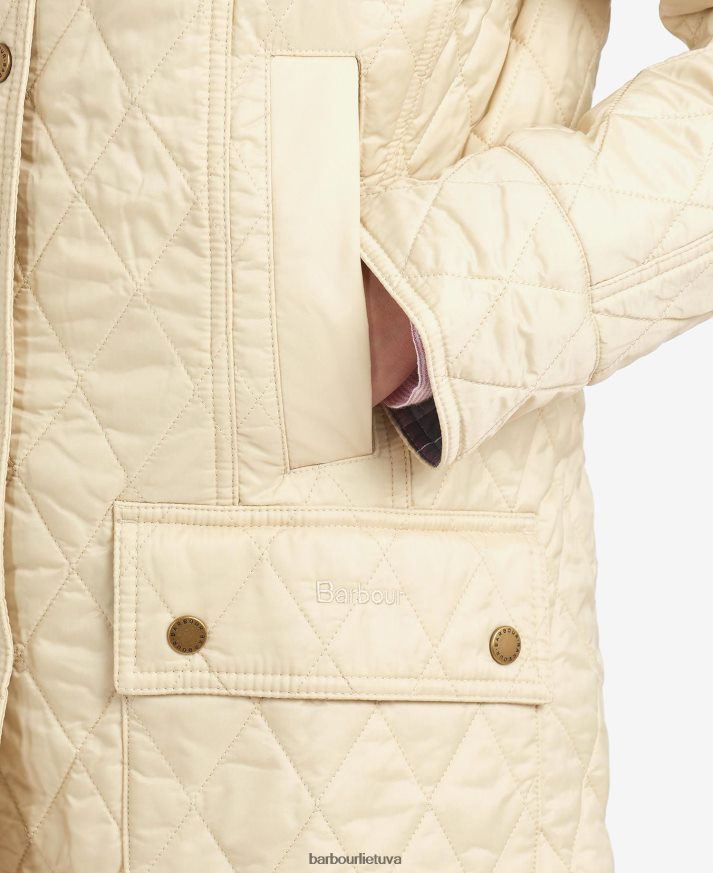 Su lenktomis priekinėmis siūlėmis subtiliai moteriškam siluetui suteikiama klasikinio tamsiai mėlynos spalvos striukė. arba perlamutrinė balta – nesenstantis universalumas. įvaizdį užbaigia toninis išsiuvinėtas barbour logotipas prie kairiojo kišenės atvarto.