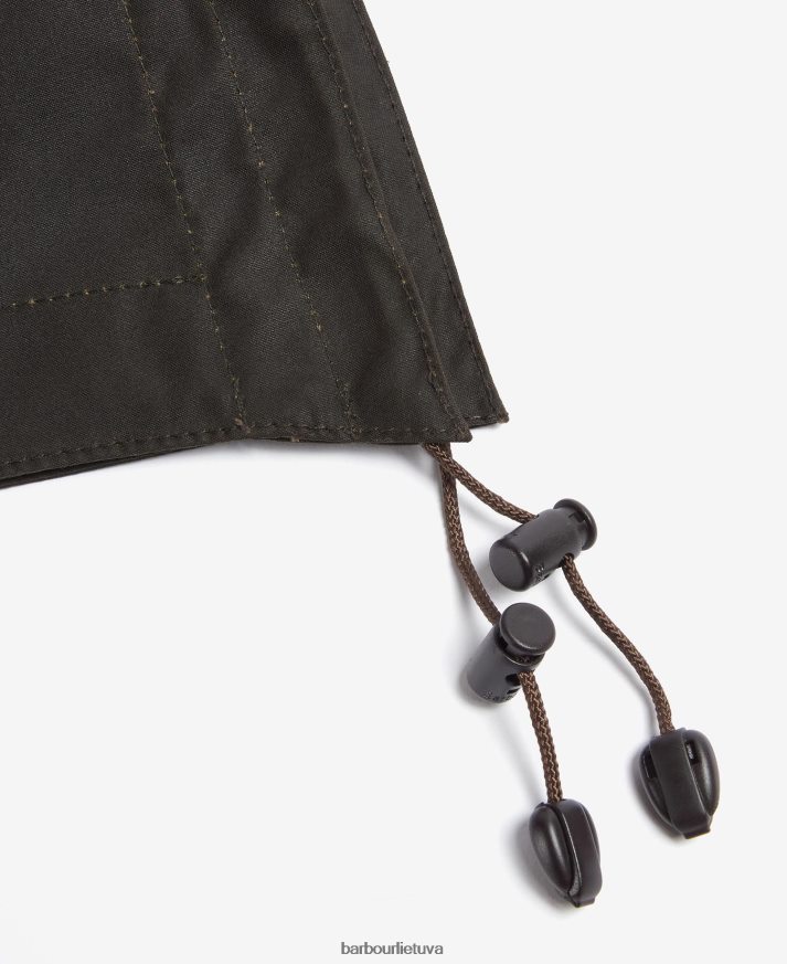 Su šiuo dideliu gobtuvu, pagaminta iš tradicinės 6 uncijų vaškuotos medvilnės, galima nešioti skrybėlę po apačia, o jame yra viela su krašteliu, kad būtų geriau matomas. suderinama su visomis iš anksto dygliuotomis „Barbour“ striukėmis.