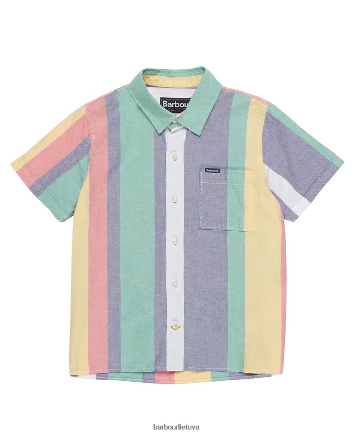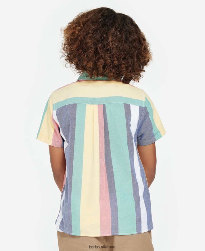 Jei ieškote kažko drąsaus ir spalvingo, jiems patiks marškiniai su įvairiaspalviais dryžuotais raštais. 100 % medvilnės drabužis turi trumpas rankoves, puikiai tinka sluoksniuoti po megztomis liemenėmis, o kišenė su barbour etikete.