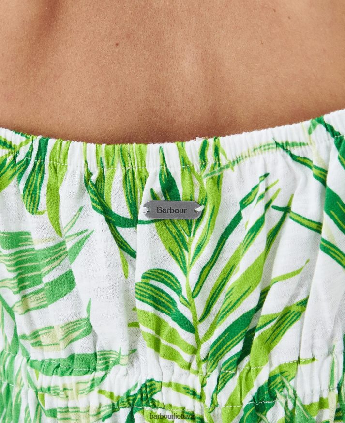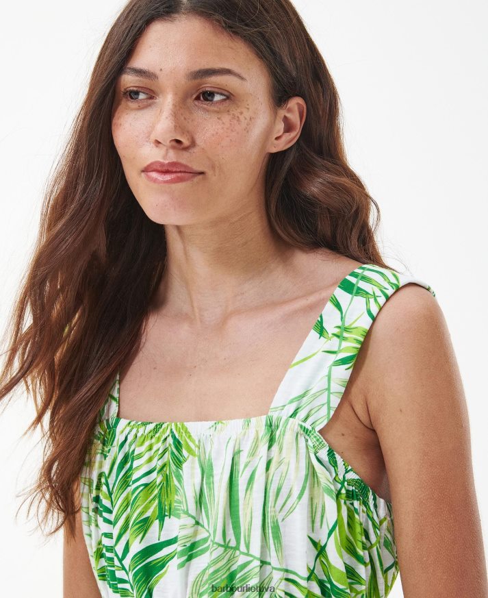 „Barbour“ vasaros parduotuvės kolekcija, sukurta atsižvelgiant į vasarinį padažą, įkvėpta drąsios ir gražios palmės lapo prigimties. Šis sodrus raštas, dominuojantis barbour plumeria midi suknelės drobėje, suteikia jūsų sezoniniam garderobui drąsų gamtos įkvėptą dizainą, puikiai tinkantį derinti su basutėmis šiltą dieną.